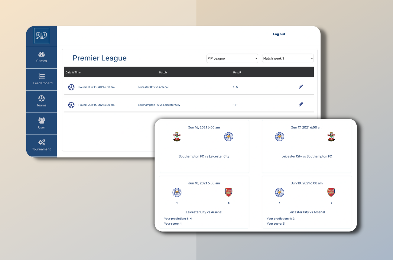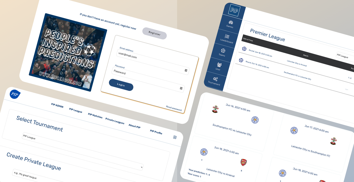 People’s Inspired Predictions (PiP) war ein Tippspiel unter Freunden, das auf Exceltabellen basierte. Also hieß es, die Excel-Funktionen und -formeln zu formalisieren und in eine Webanwendung zu überführen. Dazu gehört das Anlegen von Ligen und Spielen, das Abgeben eines Tipps und die Berechnung der Bestenliste.